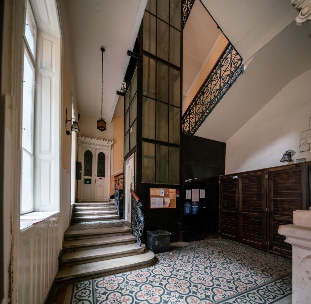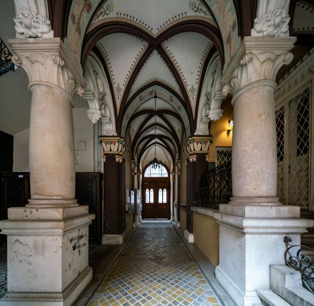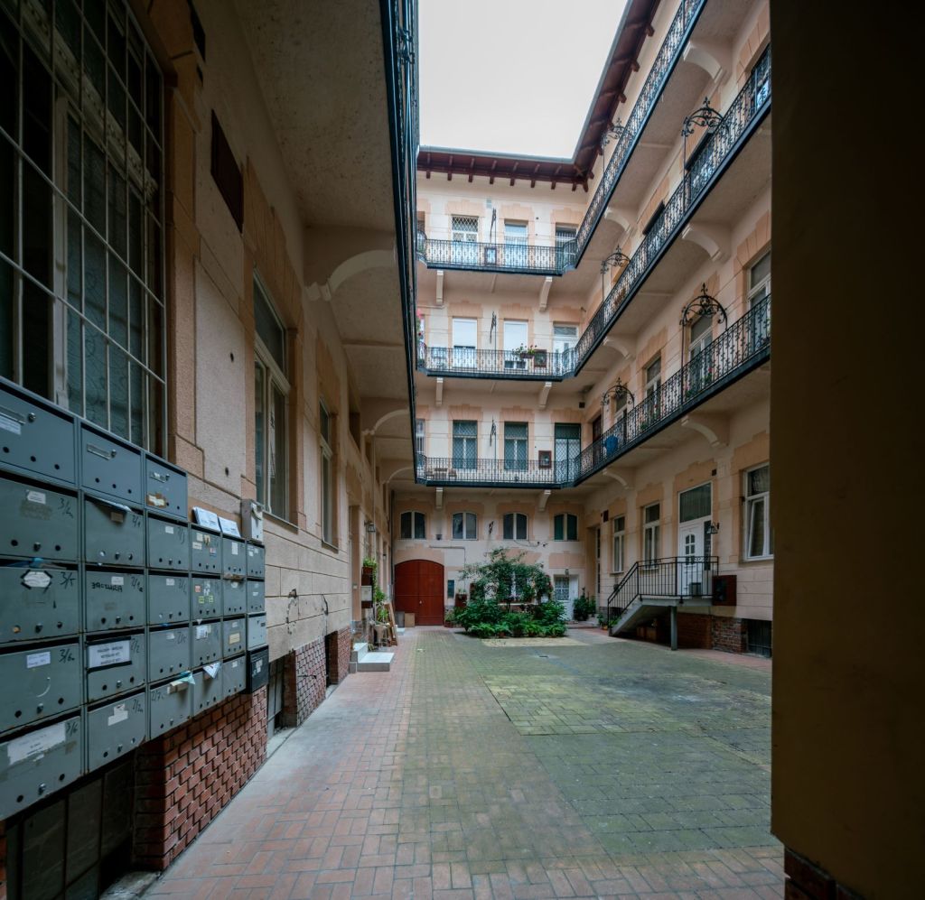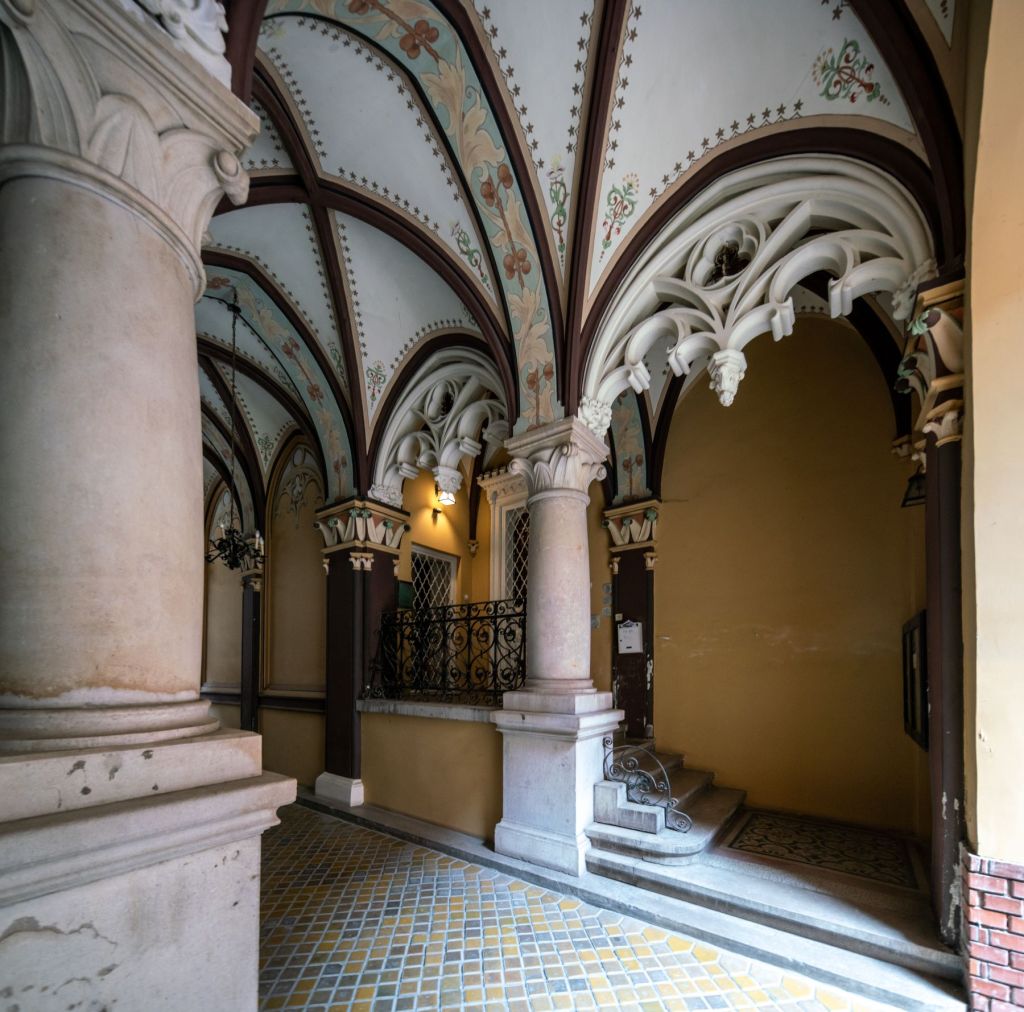 Walking into Izabella utca 63 in Budapest’s 6th district feels like entering an old castle. It’s amazing how many small architectural details, such as the special tiles and ironwork, have been preserved over the years. Even the doors of the apartments resemble castle walls! This house was built in the 1890s for Dávid Kopf and designed by his brother Dániel.