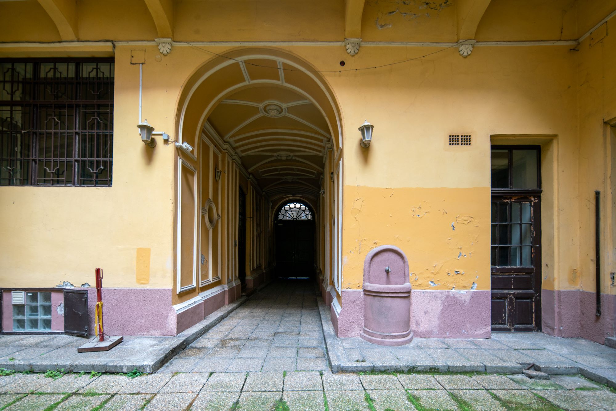 Located in Budapest’s Terézváros district, Káldy Gyula utca is a street that typically falls outside my usual route when exploring the city. However, at number 6 on this street lies a hidden gem: a former Jewish prayer house. Constructed in 1867-1868 by János Lohr for Löwy Lindenbaum, the house was under the ownership of the Freundiger family from the late 19th century until its nationalization in the late 1940s. Mózes Freundiger, the son of the rabbi of Óbuda, purchased the house. According to Anna Perczel’s book “Unprotected Heritage,” the prayer house in the courtyard was used by the Jewish community until the 1930s. In Budapest, many synagogues are integrated into residential buildings, either within an apartment, on an entire floor like Hegedűs Gyula utca 3, or in the courtyard.