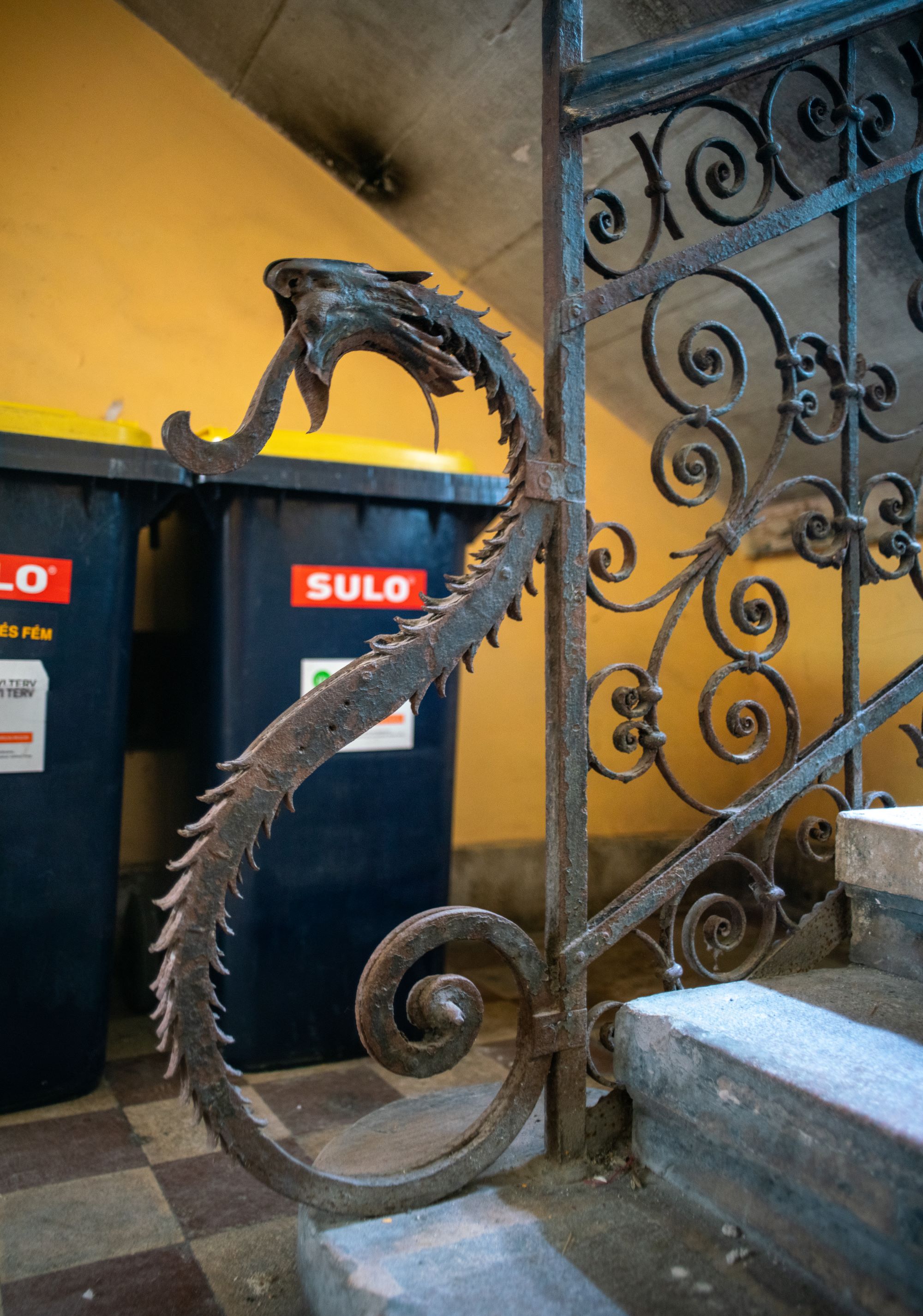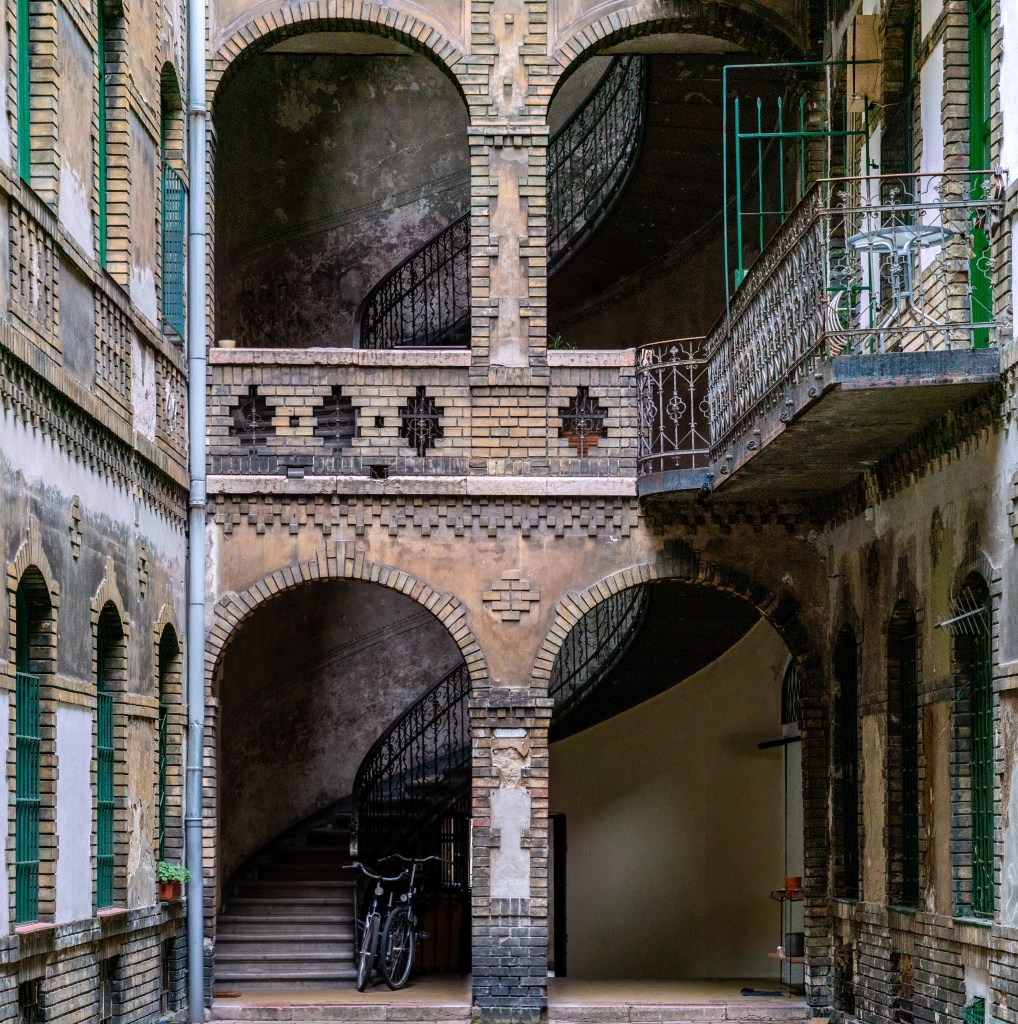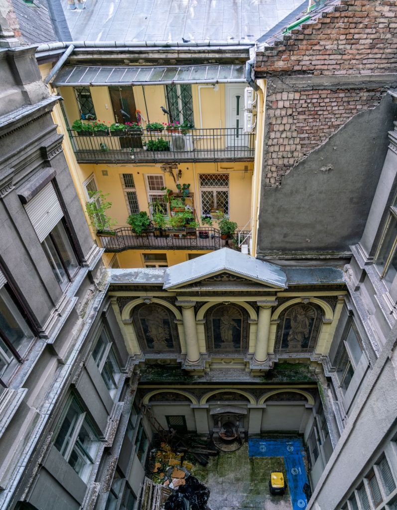 When I pass through the gate of an old apartment house in Budapest, it always feels like embarking on an exciting adventure. You never quite know what’s waiting on the other side, and that’s why I enjoy exploring and documenting the architectural heritage of this beautiful city so much. The courtyards often surprise with their beauty, featuring greenery and character that defy the expectations set by the street view. The staircases, with their unique designs, feel like hidden treasures.